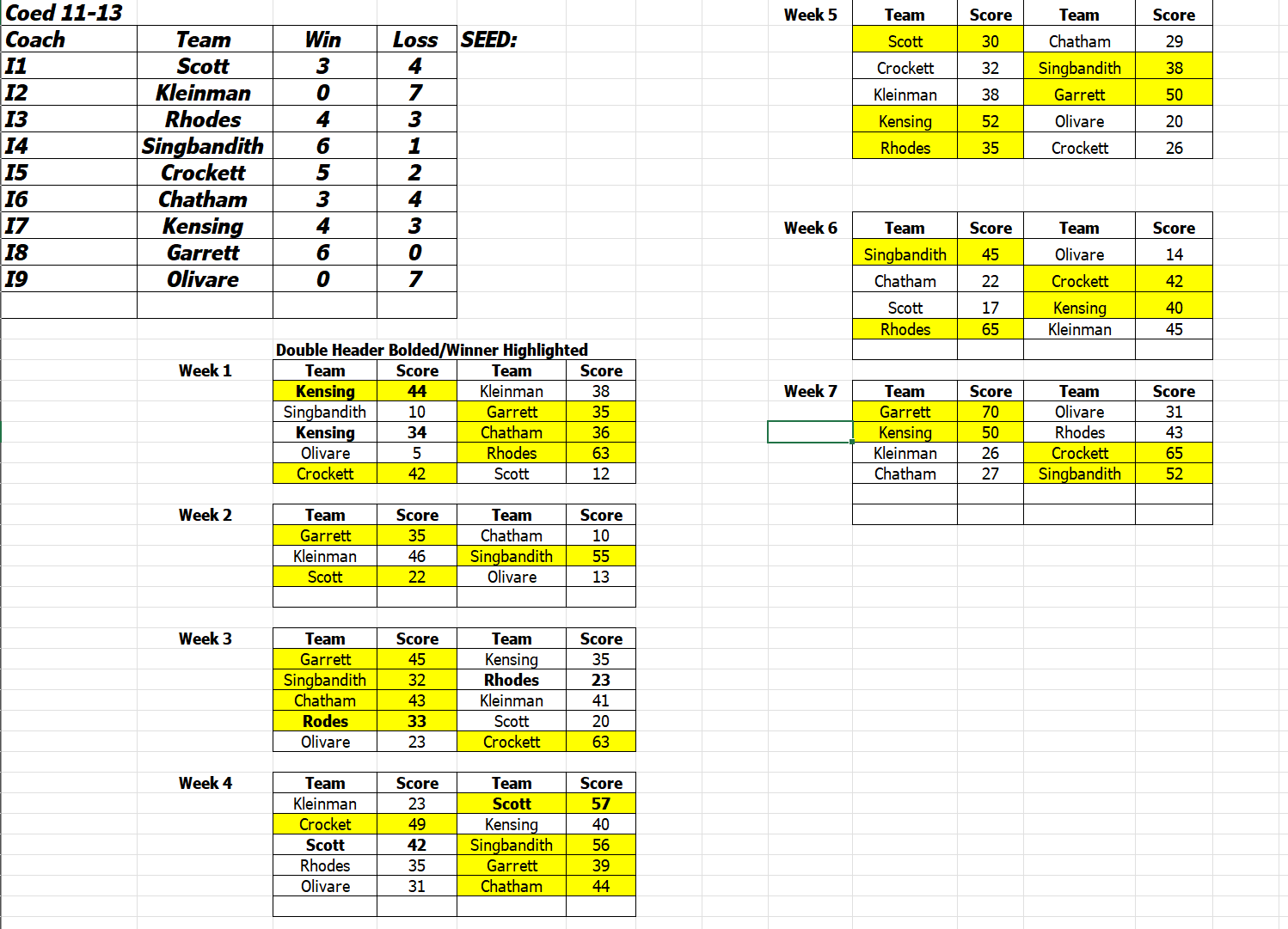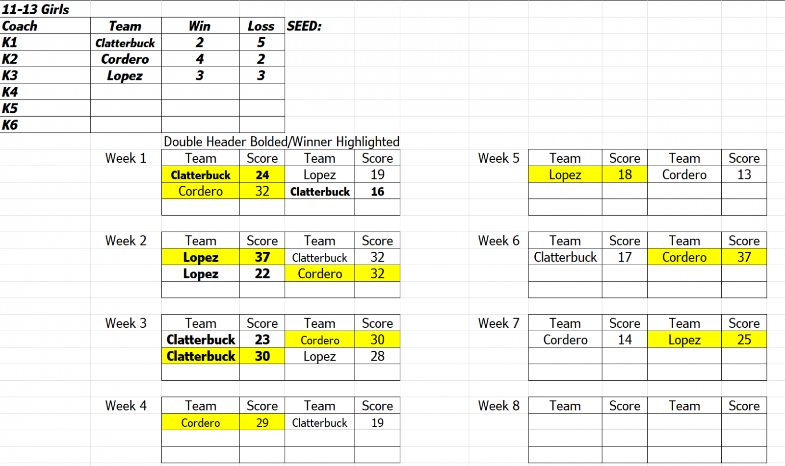 "A" League Game Schedule