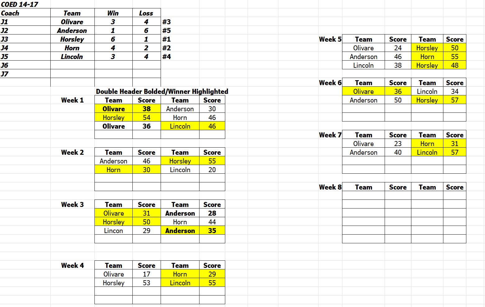 "A" Coed 15-17 Tournament Brackets