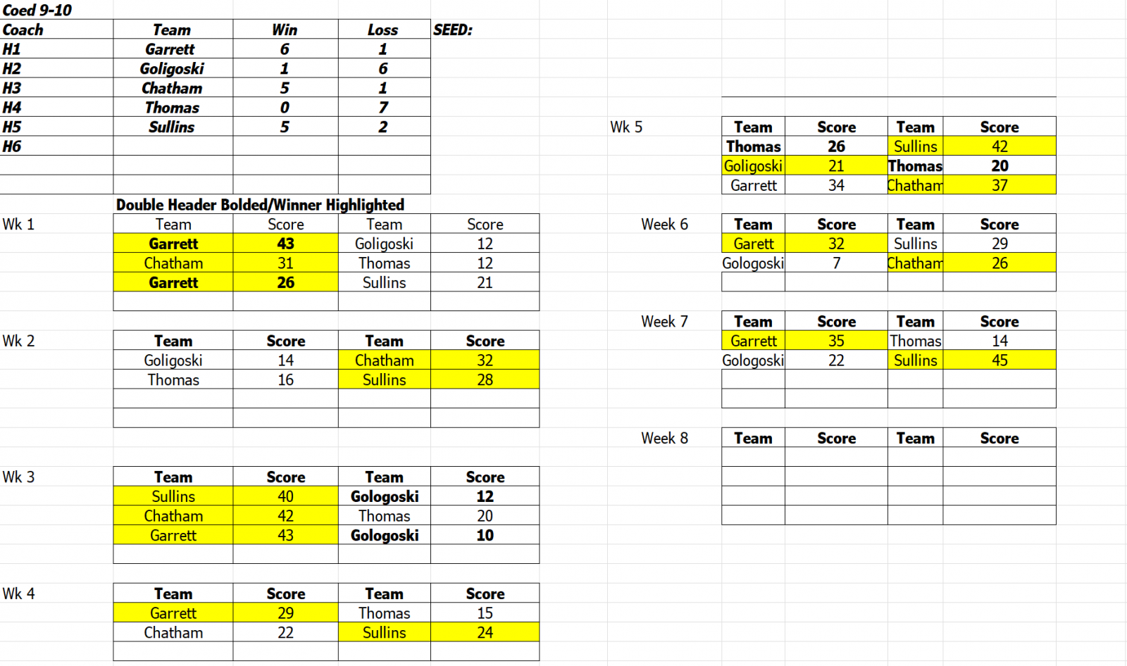"A" Coed 9-10 Tournament Brackets